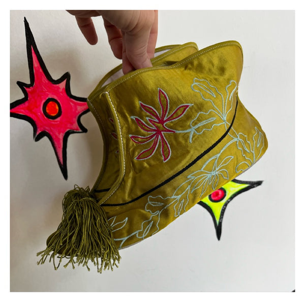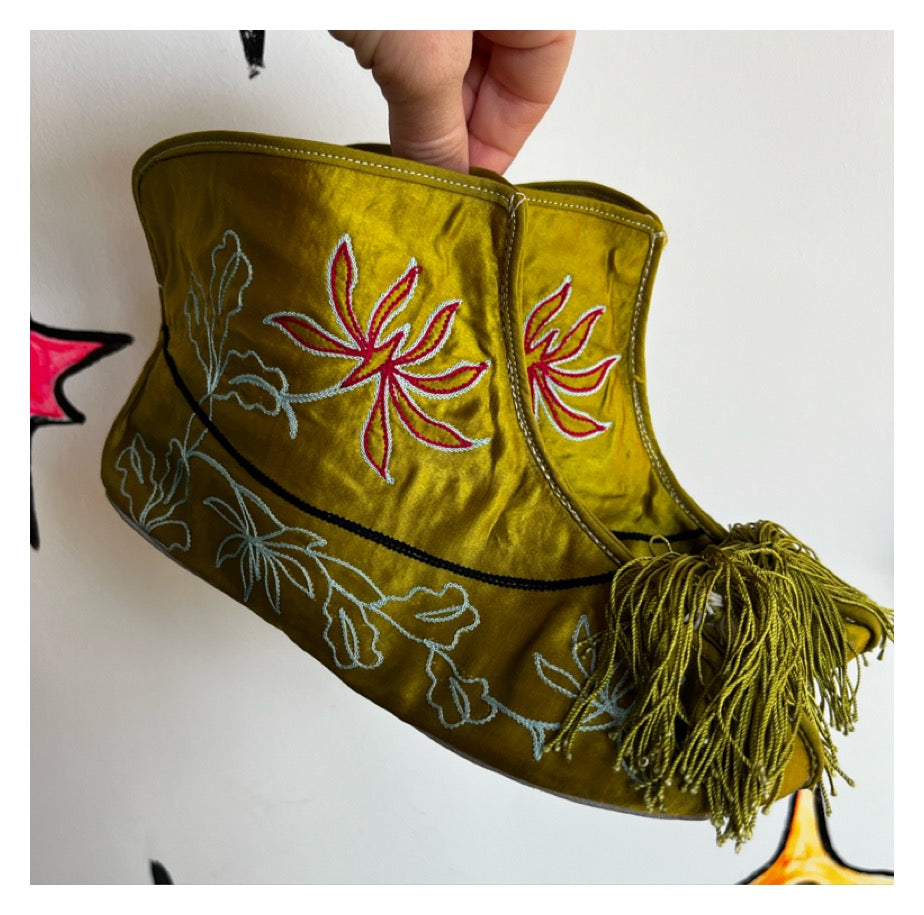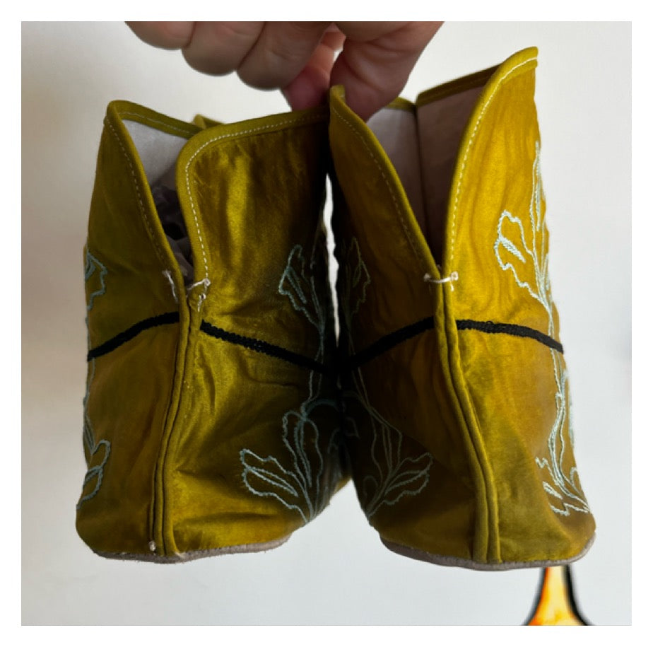 Vintage | Jacques Levine Silk Embroidered Slippers Booties | size 6