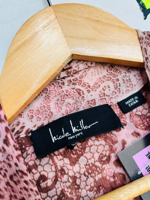 Add a touch of whimsical elegance with this vintage Nicole Miller silk top. Featuring a sheer pink fabric, delicate bow neck, and subtle leopard print, this piece combines fairy grunge charm with high-end designer appeal. Soft and slightly stretchy, it's perfect for layering or statement styling.