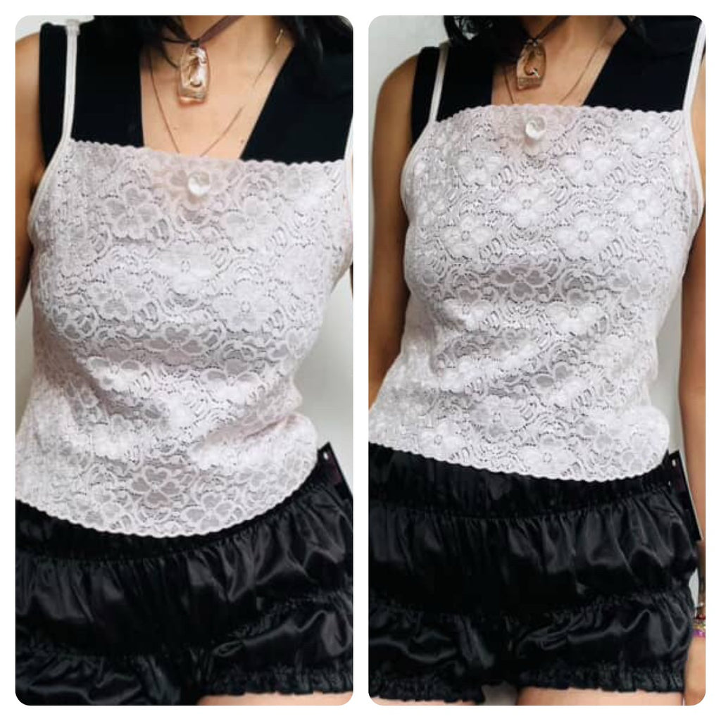 Soft, dreamy, and full of flirty 2000s charm - this vintage pastel pink lace cami is the perfect layering piece for fairy grunge, coquette, and babydoll aesthetics. Originally a child's size L, it fits like an adult women's small. Features dainty lace detailing and adjustable straps for the perfect fit. Stretchy and semi-sheer, it's ideal over a bralette or under a cardigan.
