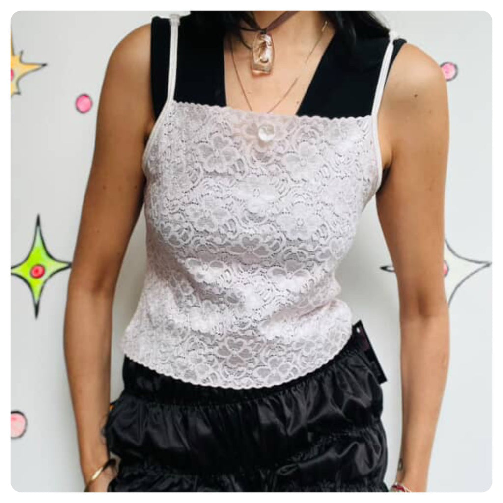 Pair it with a ruffled mini, oversized jeans, or layered chains for that romantic Y2K energy.