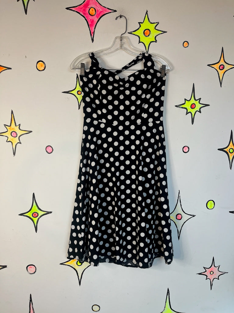 Vintage Retro 50s Style Black & White Polka Dot Halter Fit & Flare Swing Dress ' L