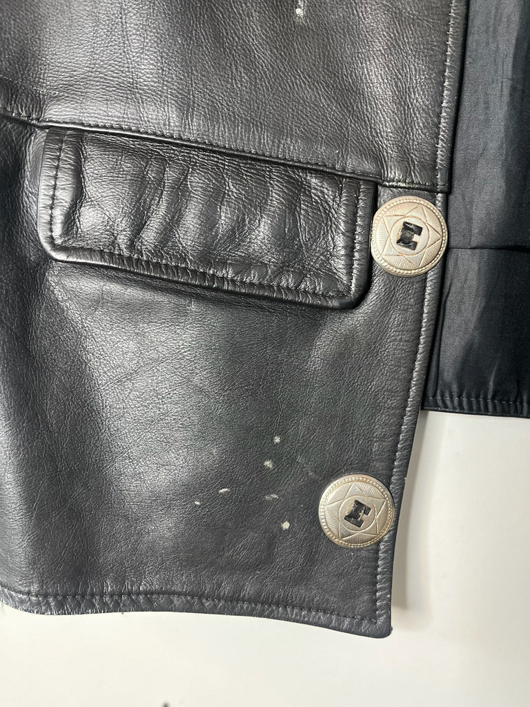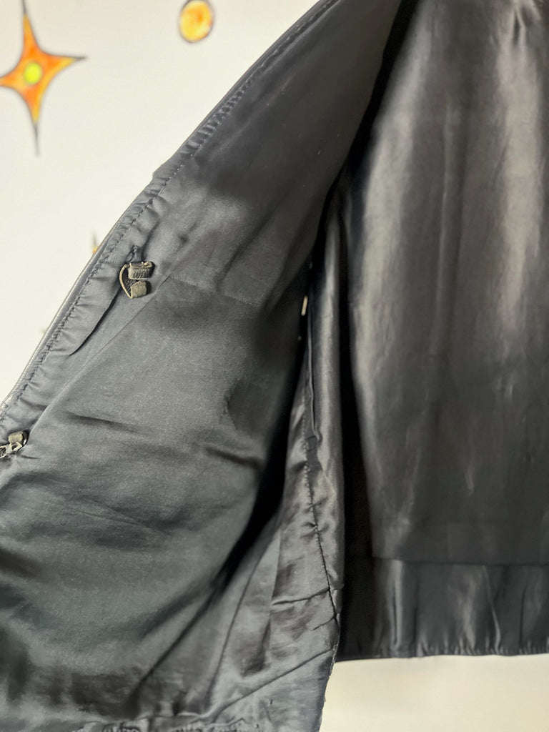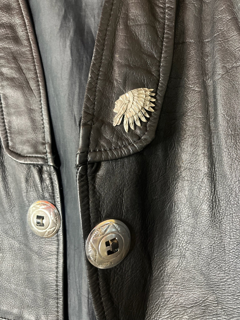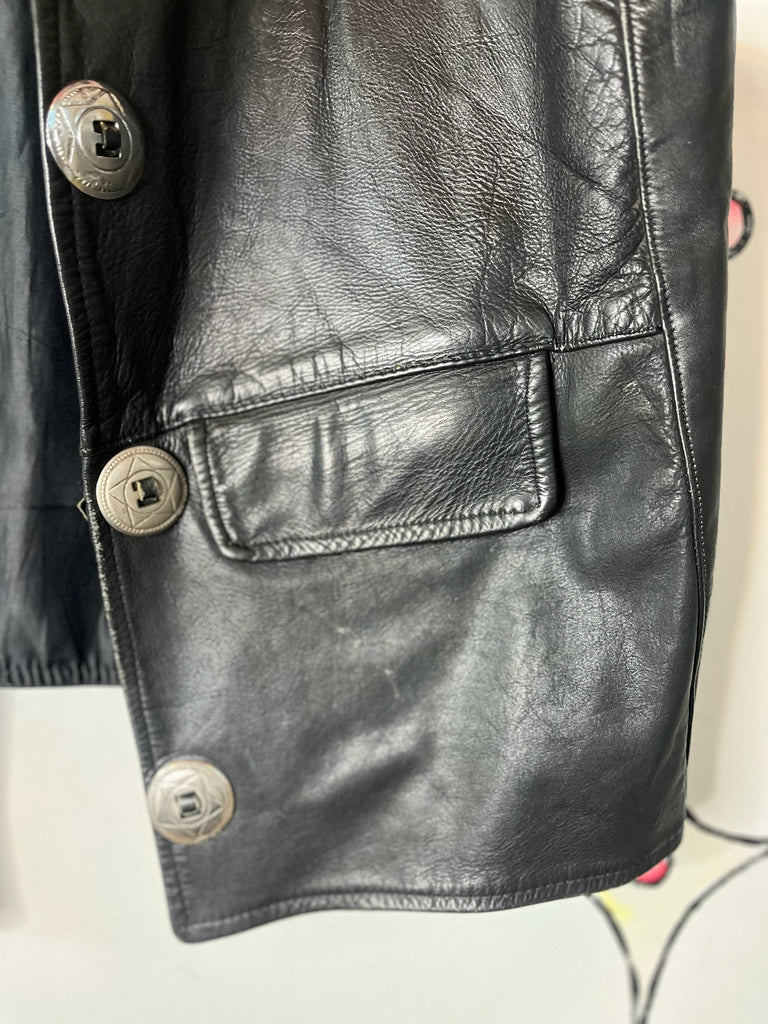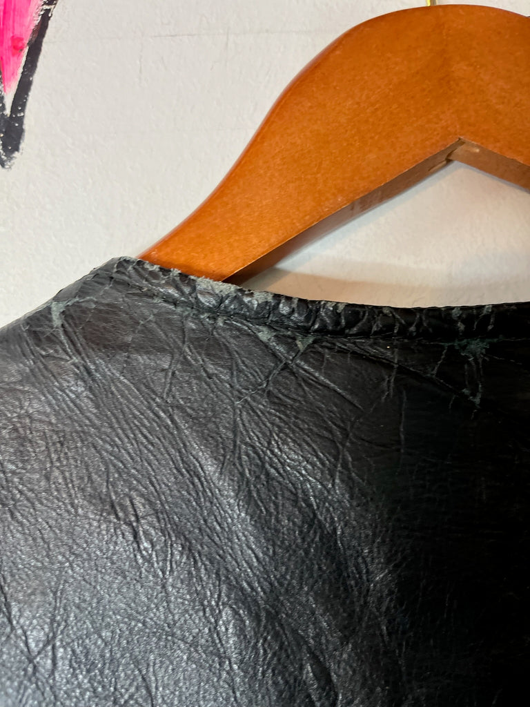 Vintage 80s/90s Black Leather Western Boho Grunge Biker Vest ' Mens Moto Vest w Silver Conchos