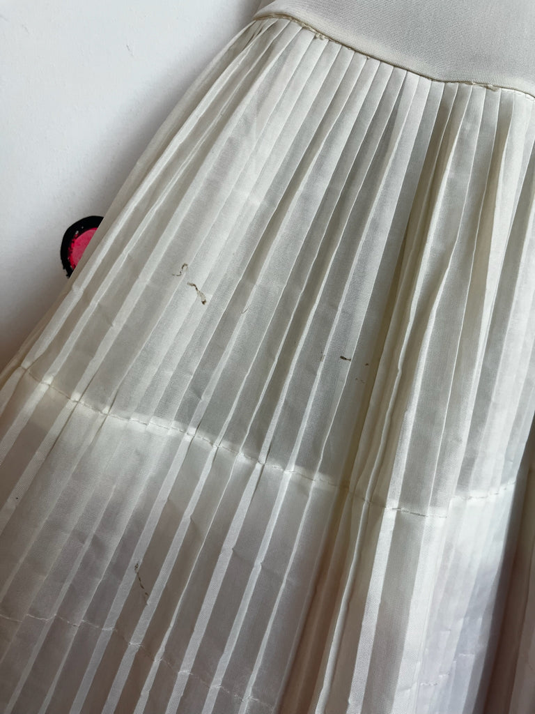 Dreamy vanilla-white layered petticoat with pink ruffle accents, lace trim, and sweet coquette babydoll vibes. Perfect for Lolita, rockabilly, square dance, bridal underlayers, or costume styling. Good vintage condition with no visible alterations or tears. A couple of small stains noted. Elastic waistband still has some stretch but is mostly stretched out and slightly crunchy (price reflects this).