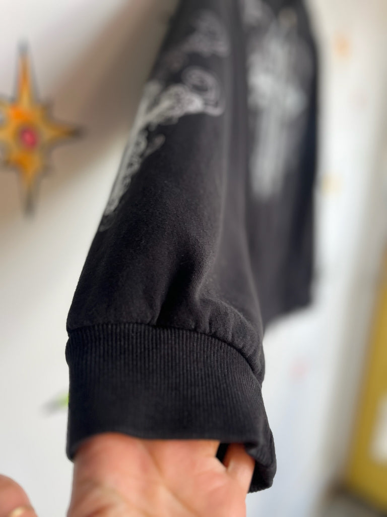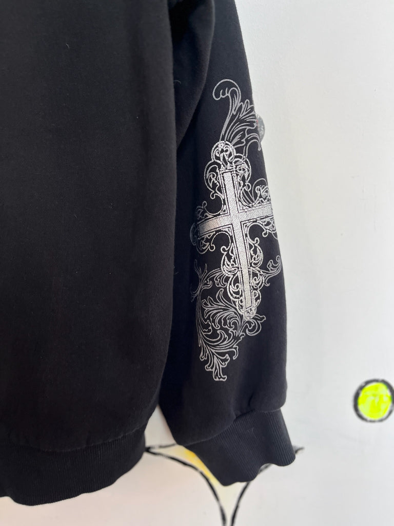 Vintage Y2K Black Mall Goth Grunge Fairy Tattoo Print Romantic Cross Hoodie XL+