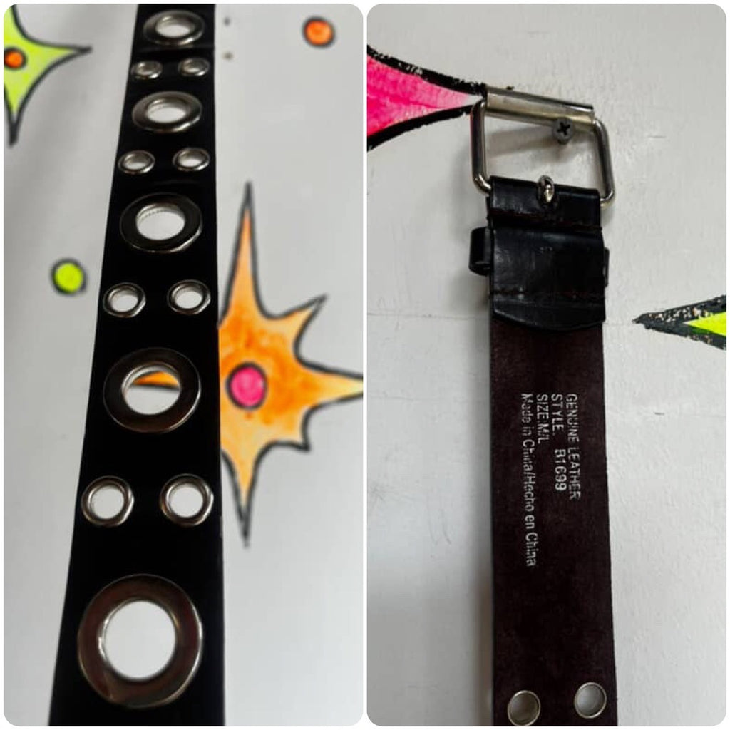 Vintage Y2K Black Vegan Leather Grommet Eyelet Utility Belt Adjustable 42.5"
