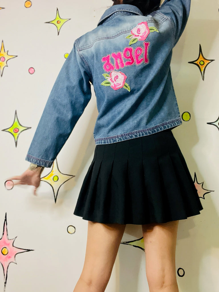 #Y2KDenim #EmbellishedJacket #CoquetteStyle #AngelPatches #Vintage90s