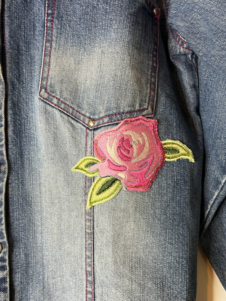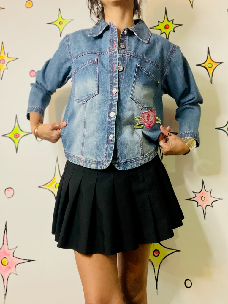 Vintage Y2K Embellished Denim Jean Jacket | ANGEL Roses Patches | Coquette | S