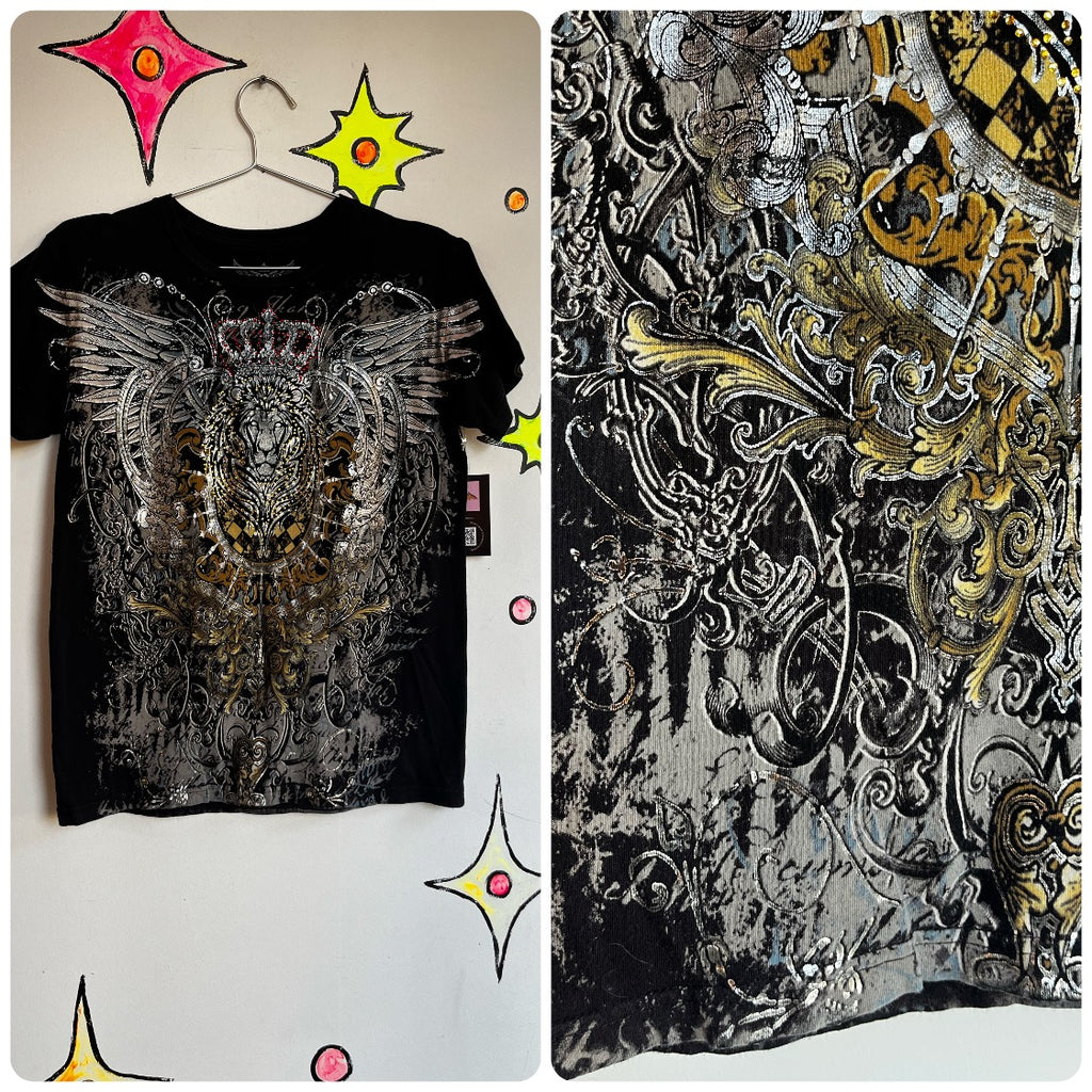 Vintage Y2K ' Embellished Grunge Indie Sleaze Tattoo McBling Tee T Shirt ' Small