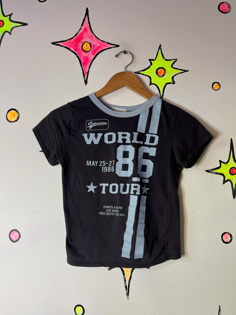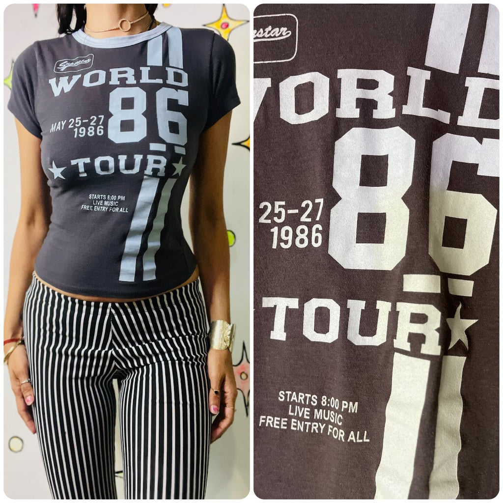 Serve full fairy-grunge-glam energy in this fitted Y2K baby tee by French Pastry. Features a moto-racing / concert-tee vibe with that iconic early-2000s stretchy, body-hugging fit.