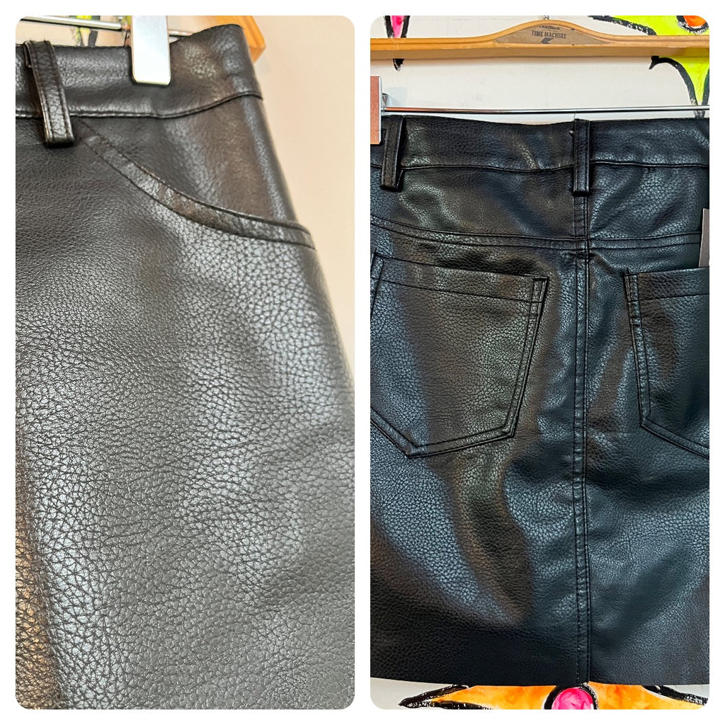 Vintage Y2K | Faux Leather Vinyl Mall Goth Emo Witch Grunge Black Mini Skirt | M