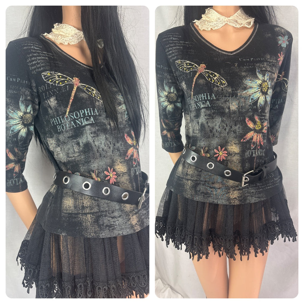 Y2K Grunge Fairy Whimsy Goth Tattoo Print Wearable Art Top - Size M