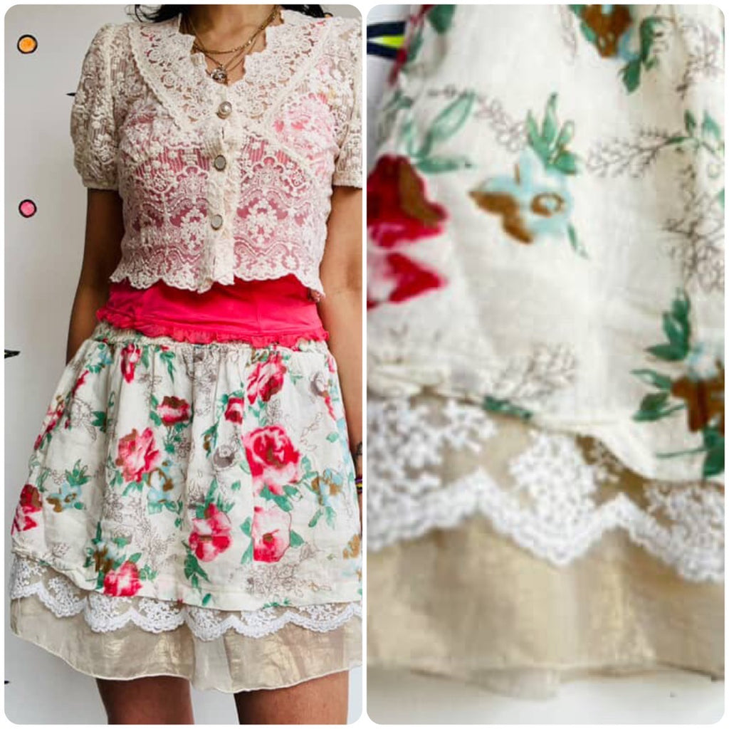 Vintage Y2K ' Lace Fairy Grunge Babydoll Coquette Rococo Ruffle Mini Skirt ' M