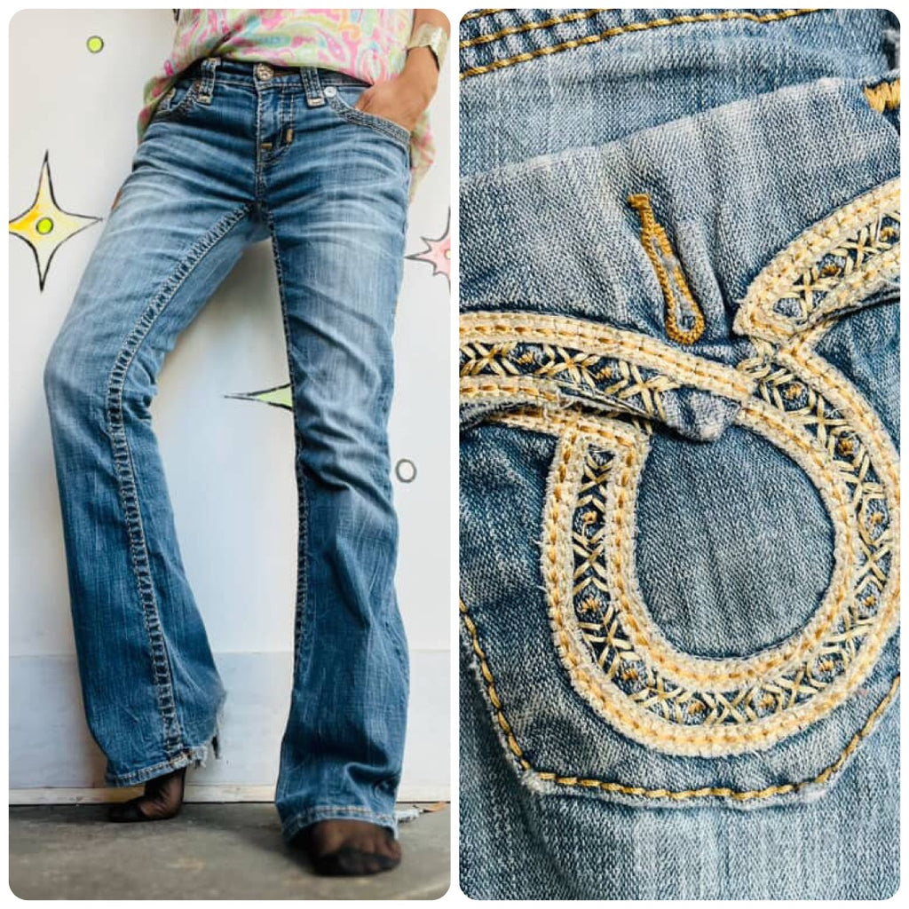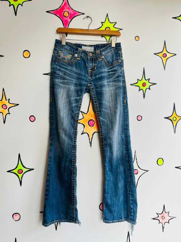 Y2K Miss Me / Big Star Embellished Low-Rise Jeans - Indie Sleaze Fairy Grunge - Semi-Flare Denim - Size 26R
