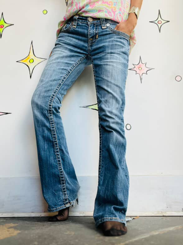 Step into early 2000s nostalgia with these Y2K low-rise jeans by Big Star and Miss Me. Featuring subtle embellishments, a semi-flare cut, and a lived-in indie sleaze aesthetic, these jeans are perfect for fairy grunge, Y2K streetwear, or nostalgic indie styling. Pair with crop tops, graphic tees, or platform boots for full retro vibes.
