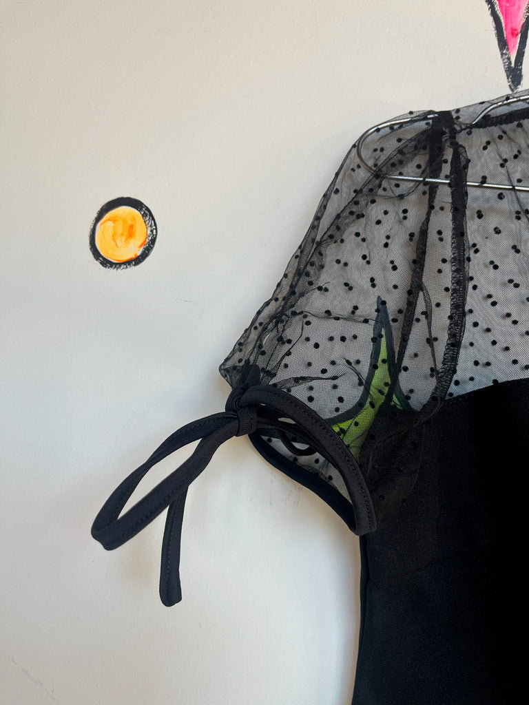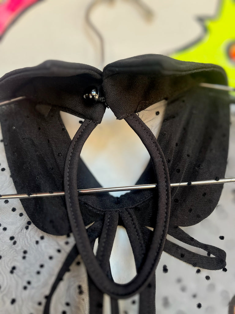 Darkly romantic and ultra Y2K - this vintage black lace cropped blouse gives off major goth-coquette energy. The bow neck detail and semi-sheer lace make it the perfect piece for layering or styling as a statement top.