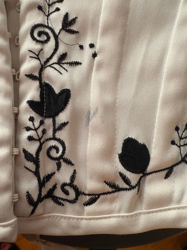 Y2K Black & White Silky Rococo Coquette Fairy Grunge Embroidered Goth Corset | L