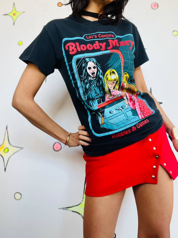 #BloodyMaryTee #MallGoth #Y2KHorror #VintageGoth #HalloweenStyle #CreepyCo #GothAesthetic #SpookySeason #Y2KFashion