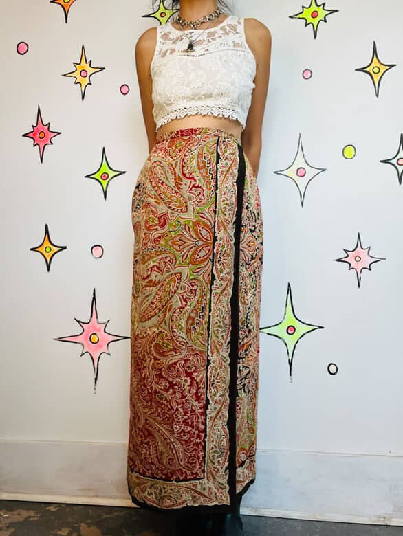Y2K Boho Fairy Grunge Paisley Silk Wrap Maxi Skirt | Paisley Print | Size 6