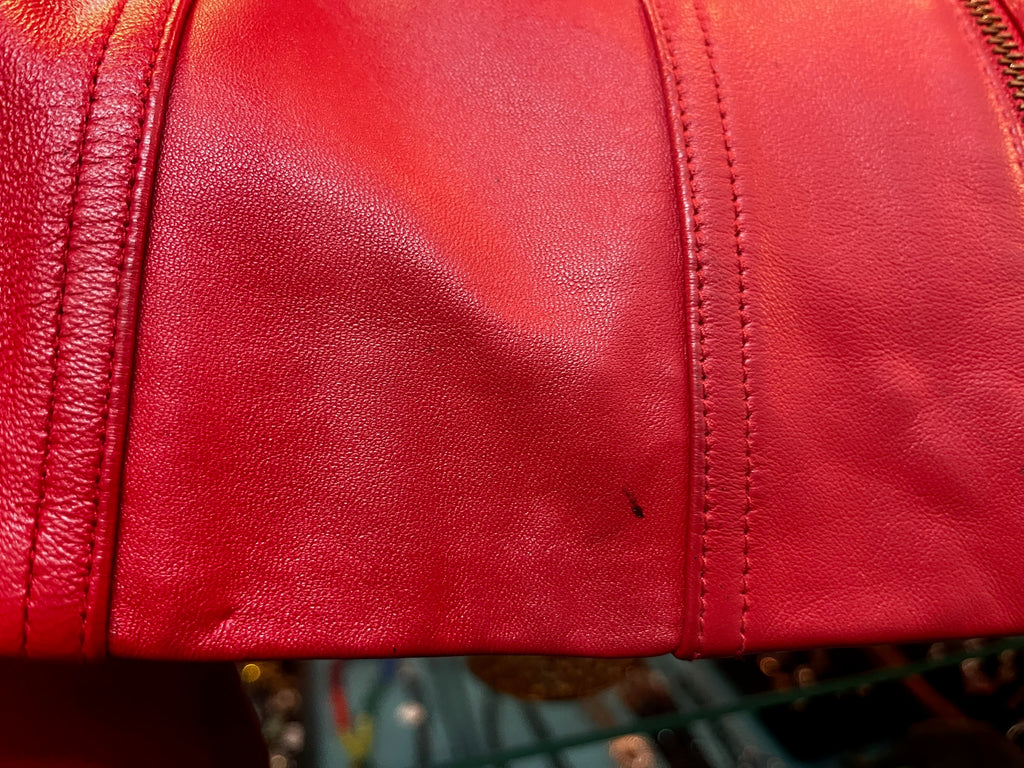 Y2K Cherry Red Leather Jacket - Indie Sleaze Glam Rock Moto Style - Size M