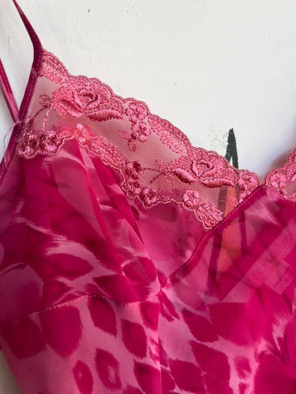 Vintage Y2K Hot Pink Sheer Abstract Floral Slip Dress ' Fairy Grunge ' Victoria's Secret S