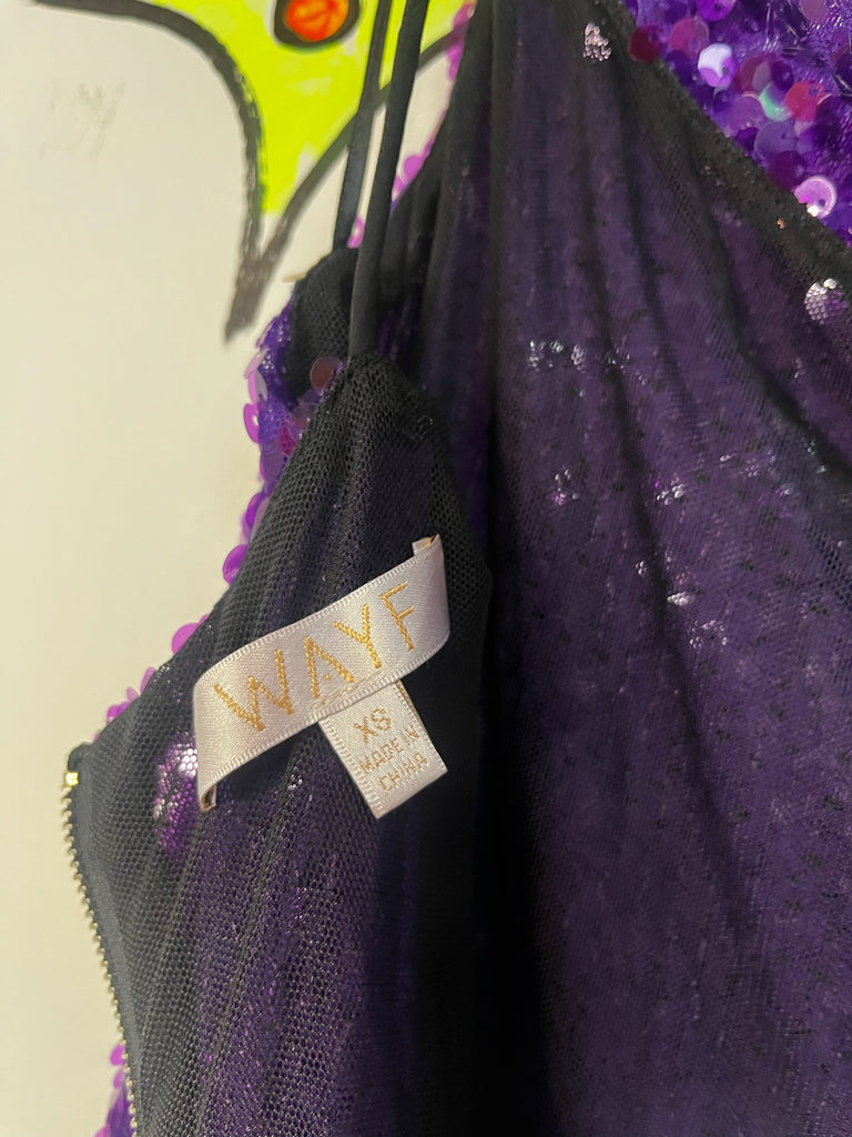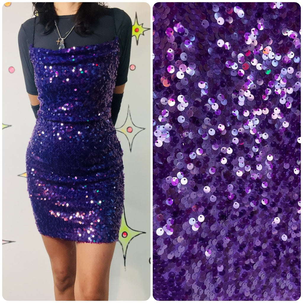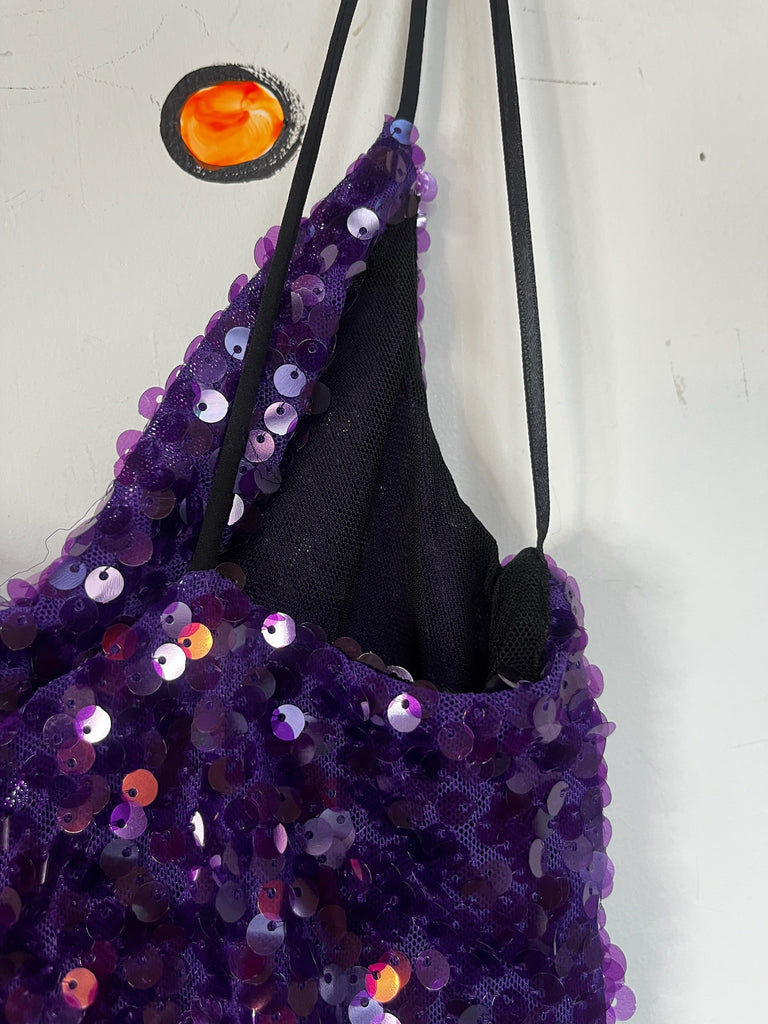 Y2K Metallic Sparkle Sequin Purple Mini Party Dress ' Christmas Disco NYE ' XS