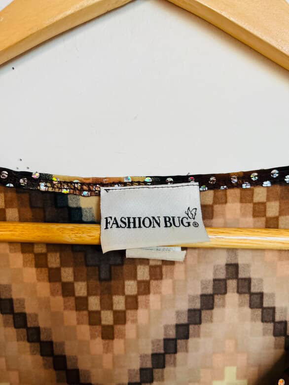 Bring Y2K vibes to your wardrobe with this Abstract Glitter Fairy Grunge Op Art Stretchy Top by Fashion Bug! ✨ In good vintage condition, with no stains or tears. Some shimmer stickies are missing, but it's minimal and barely noticeable. Made from 93% polyester, 7% spandex for a comfy, stretchy fit. Perfect for festival looks, retro outfits, or Y2K fashion lovers.