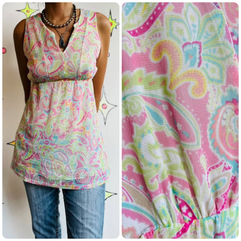 Y2K Pastel Paisley Print Mesh Fairy Grunge Top - Soft Sheer Lightweight - Size S
