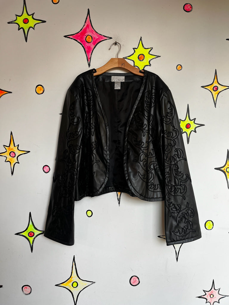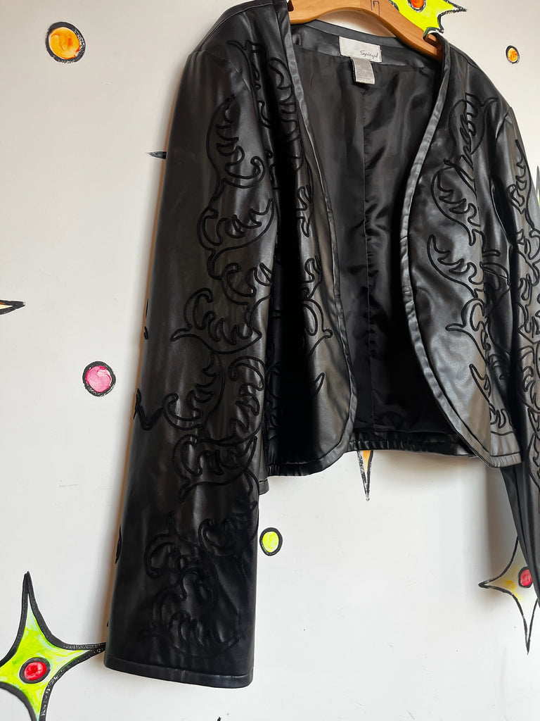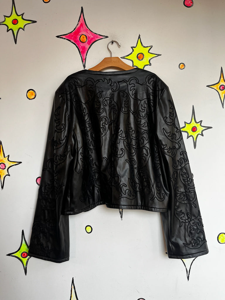 Y2K Vegan Black Faux Leather Jacket Western Embellished Boho Fairy Grunge - XL