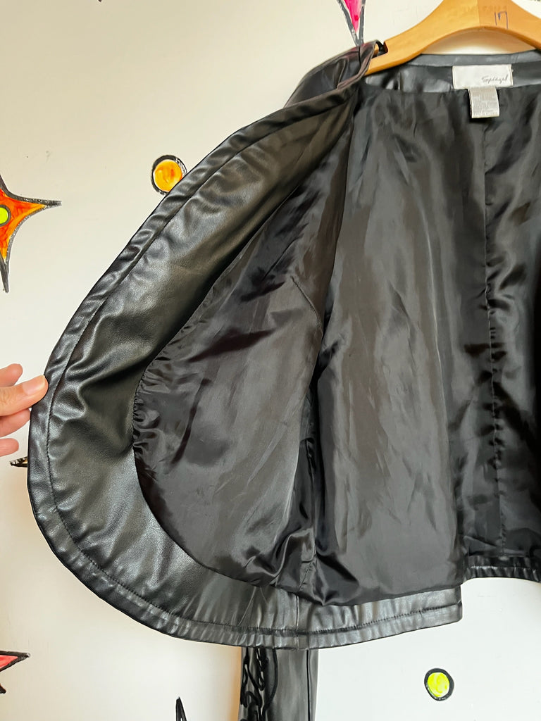 Y2K Vegan Black Faux Leather Jacket Western Boho Fairy Grunge - Size XL